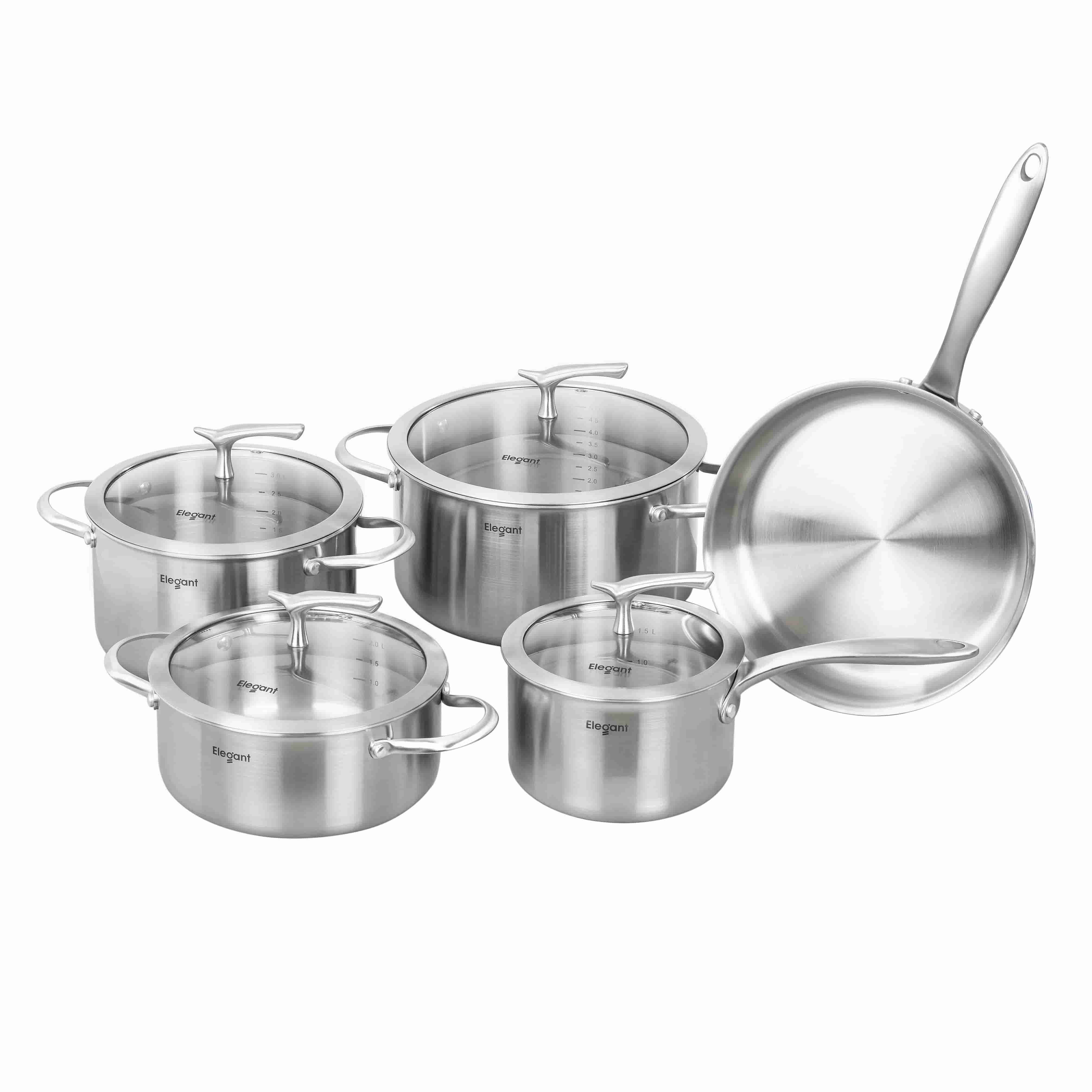 Bộ Nồi Inox Elegant Phoenix 5 Món – Thép 18/10 Cao Cấp, Sáng Bóng, Bền Bỉ Trọn Đời