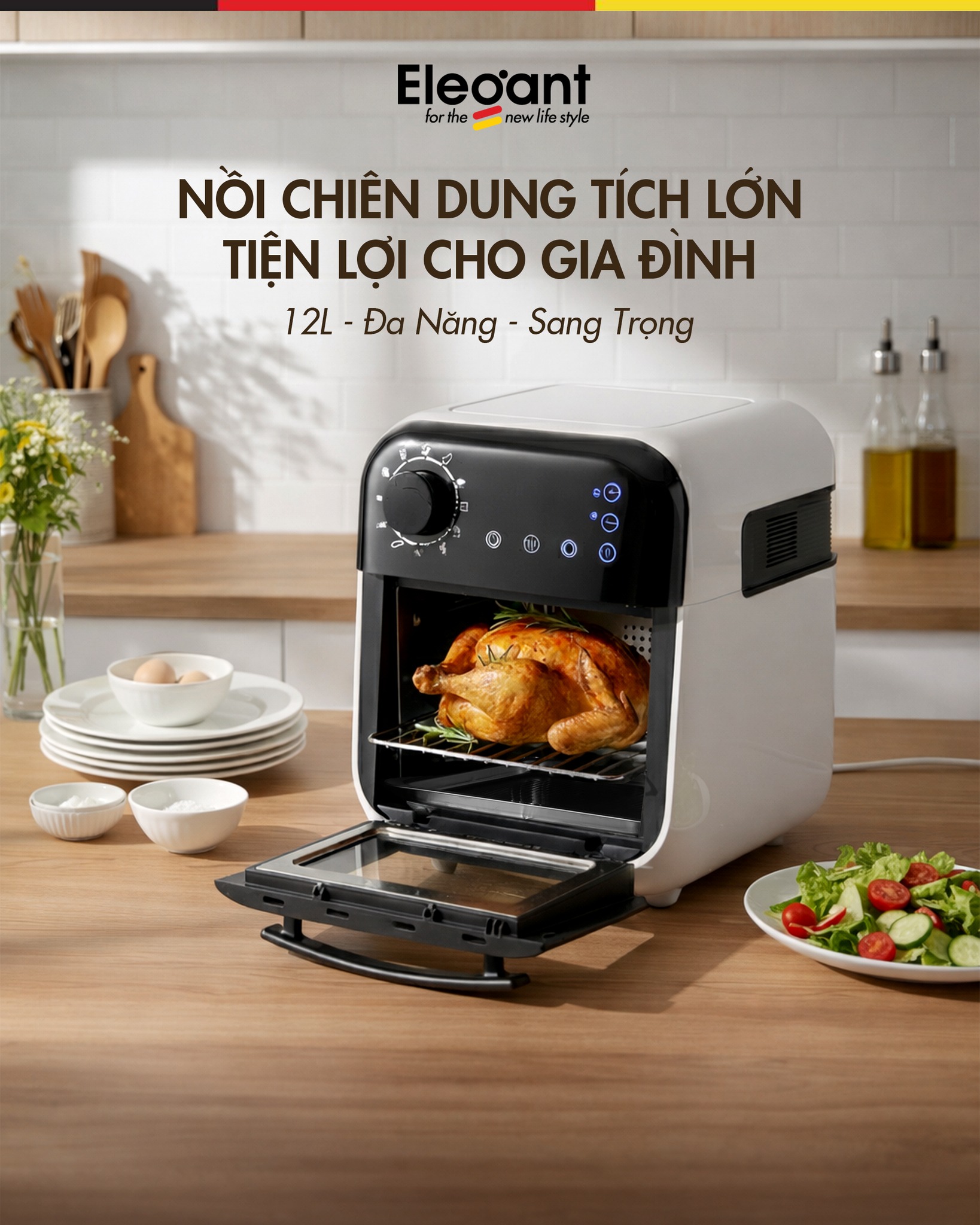 Nồi Chiên Không Dầu Elegant 12L – Đẳng Cấp Công Nghệ Đức Cho Bếp Việt